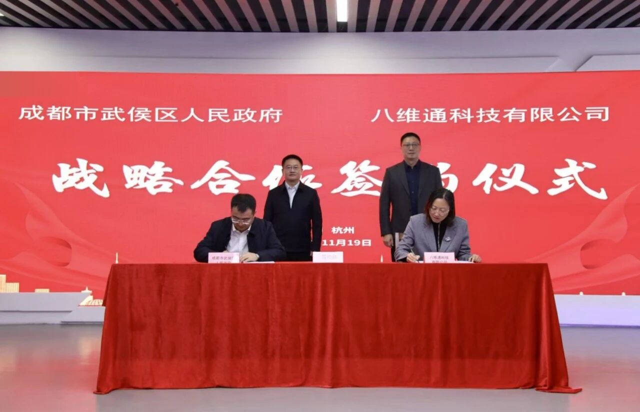 2025年11月19日,八維通科技有限公司(以下簡稱“八維通”)與成都市武侯區人民政府正式簽署戰略合作框架協議。武侯區區委副書記、區長景波與八維通董事長楊宏旭出席簽約儀式并...