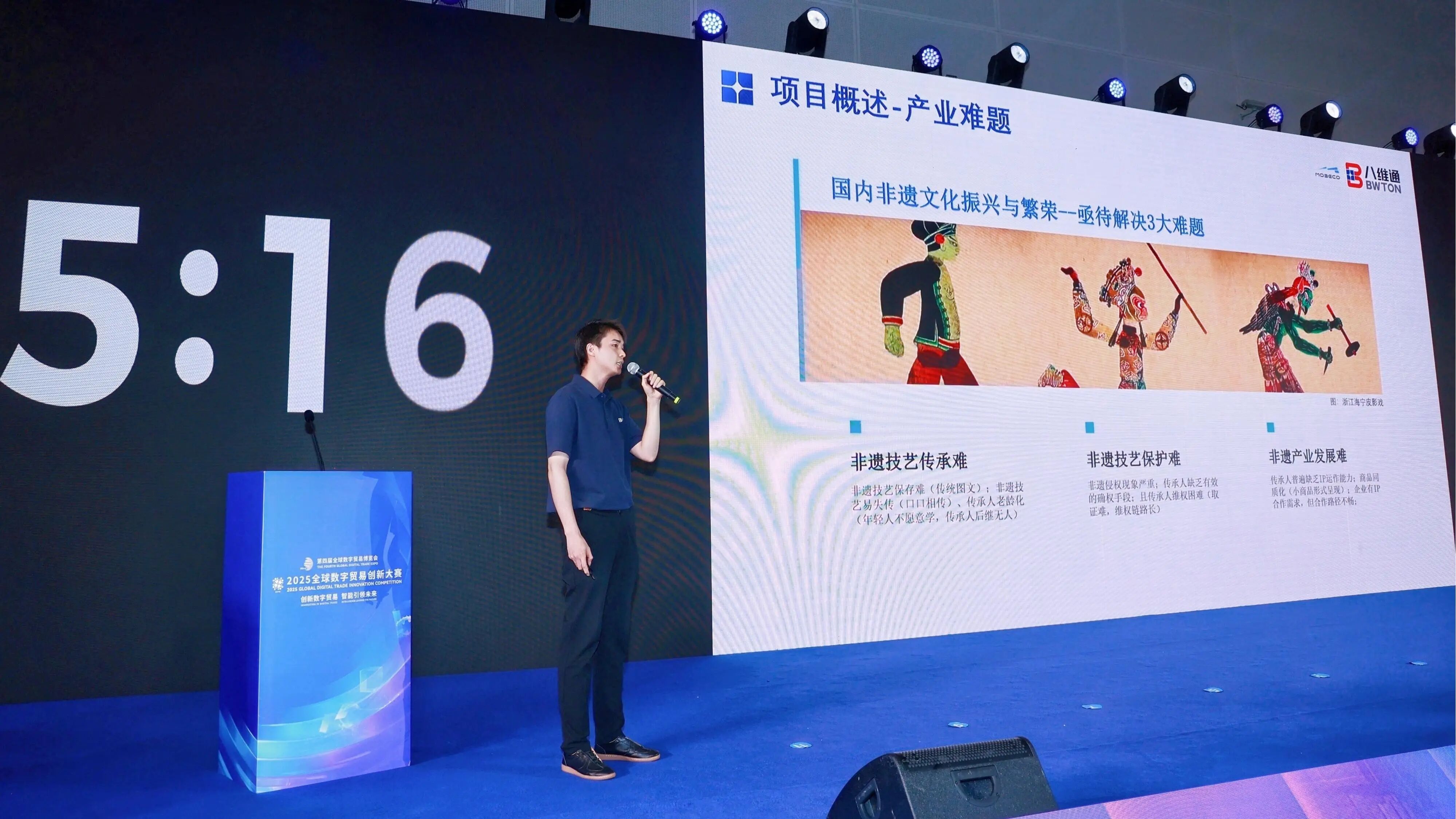 9月28日,2025全球數字貿易創新大賽決賽(數字文娛賽道)在杭州大會展中心圓滿收官。大賽聚焦數字文化貿易、創意內容全球化生產與消費創新等多個維度,匯集全球70多支頂尖團隊,展開數字文娛產業前沿應用的巔峰對決。八維通科技有限公司憑借“數字貿易賦能非遺文化,構建產業新生態”項目獲得數字文娛賽道全球銅獎!