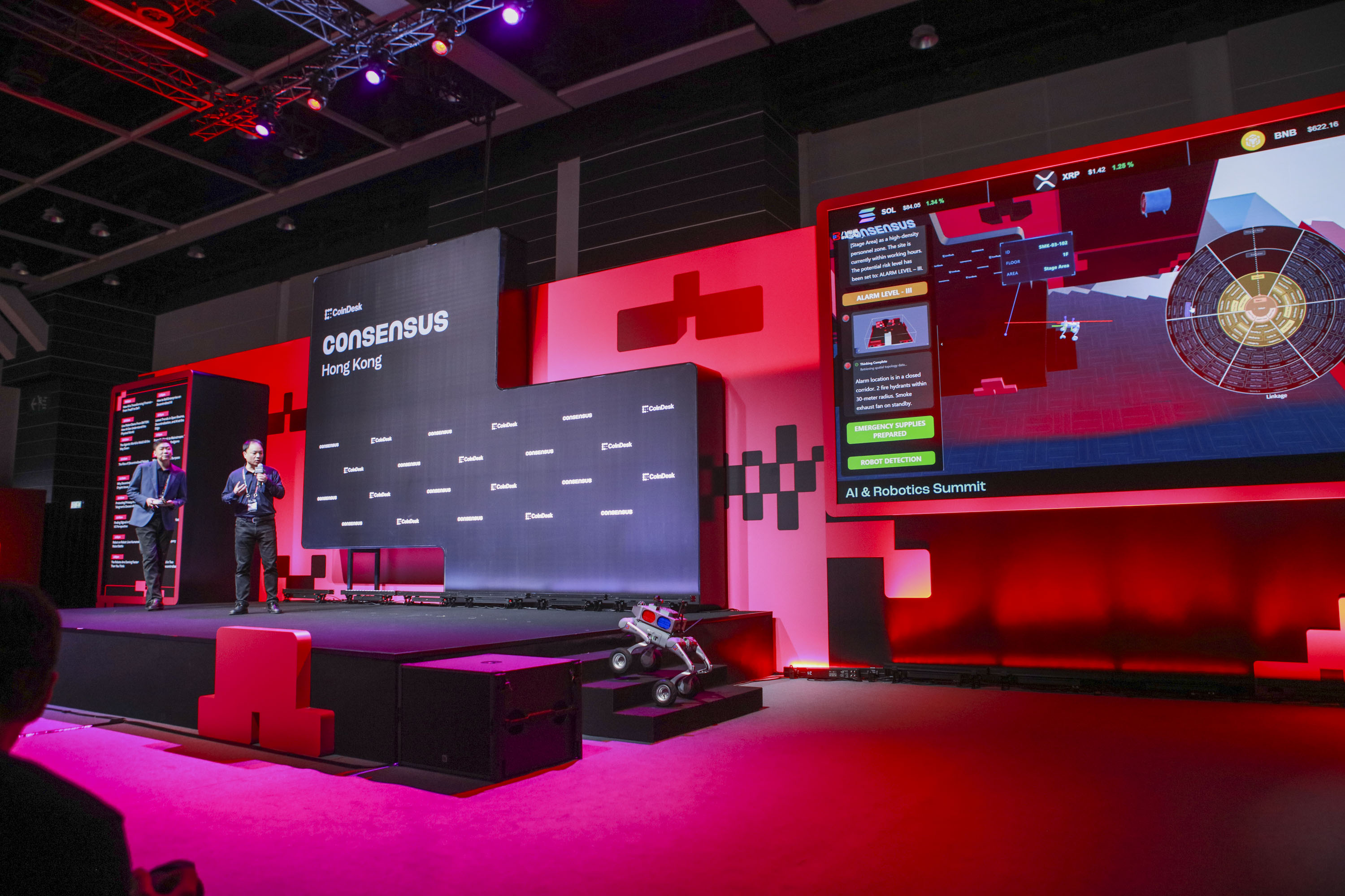 在全球數(shù)字資產(chǎn)從“概念探索”邁向“建制融合”的關(guān)鍵節(jié)點(diǎn),2026年2月10日至12日,備受矚目的Consensus Hong Kong 2026在香港盛大舉行。本屆大會以“Web3與區(qū)塊鏈加速應(yīng)用新時代”為主題,首度增設(shè)“人工智能與機(jī)器人峰會”,系統(tǒng)探討AI、機(jī)器人技術(shù)與區(qū)塊鏈的融合路徑與生態(tài)構(gòu)建。作為空間智能領(lǐng)域領(lǐng)軍企業(yè),八維通科技有限公司團(tuán)隊(duì)?wèi)?yīng)邀參會,攜公司前沿的具身智能解決方案精彩亮相。通過實(shí)景機(jī)器人演示與深度演講,八維通向全球展示了“物理世界可計(jì)算、可交互、可信任”的智能化未來。