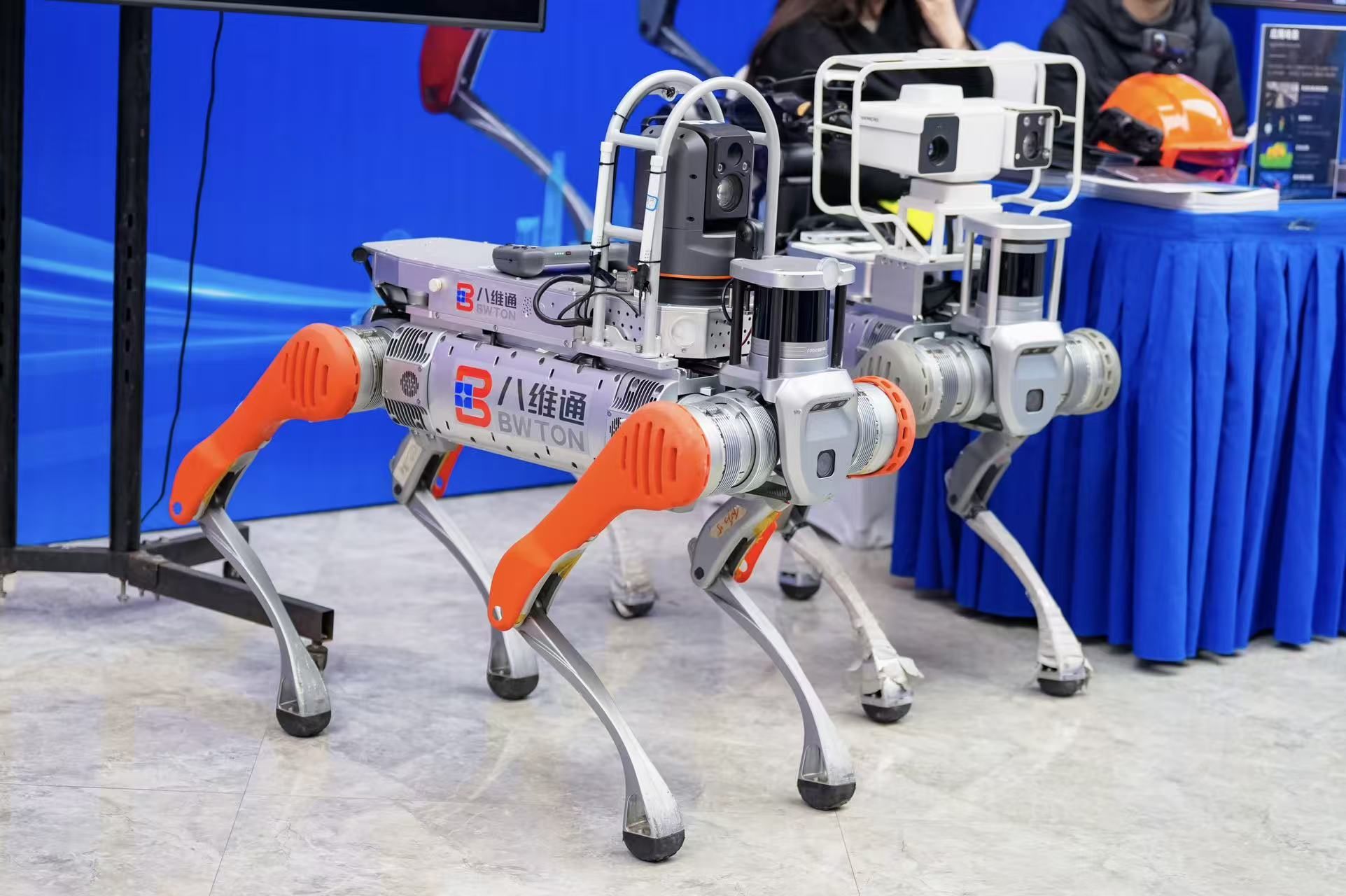 會(huì)場(chǎng)外,一場(chǎng) AI 硬核科技盛宴同步上演,眾多前沿科技成果集中亮相。八維通智能制造的展臺(tái)前人氣高漲,集中展陳了空間智能、具身智能領(lǐng)域的核心技術(shù)產(chǎn)品與行業(yè)應(yīng)用成果。展區(qū)現(xiàn)場(chǎng),消防機(jī)器狗成為 “人氣王”,吸引了眾多與會(huì)嘉賓駐足打卡、交流探討。