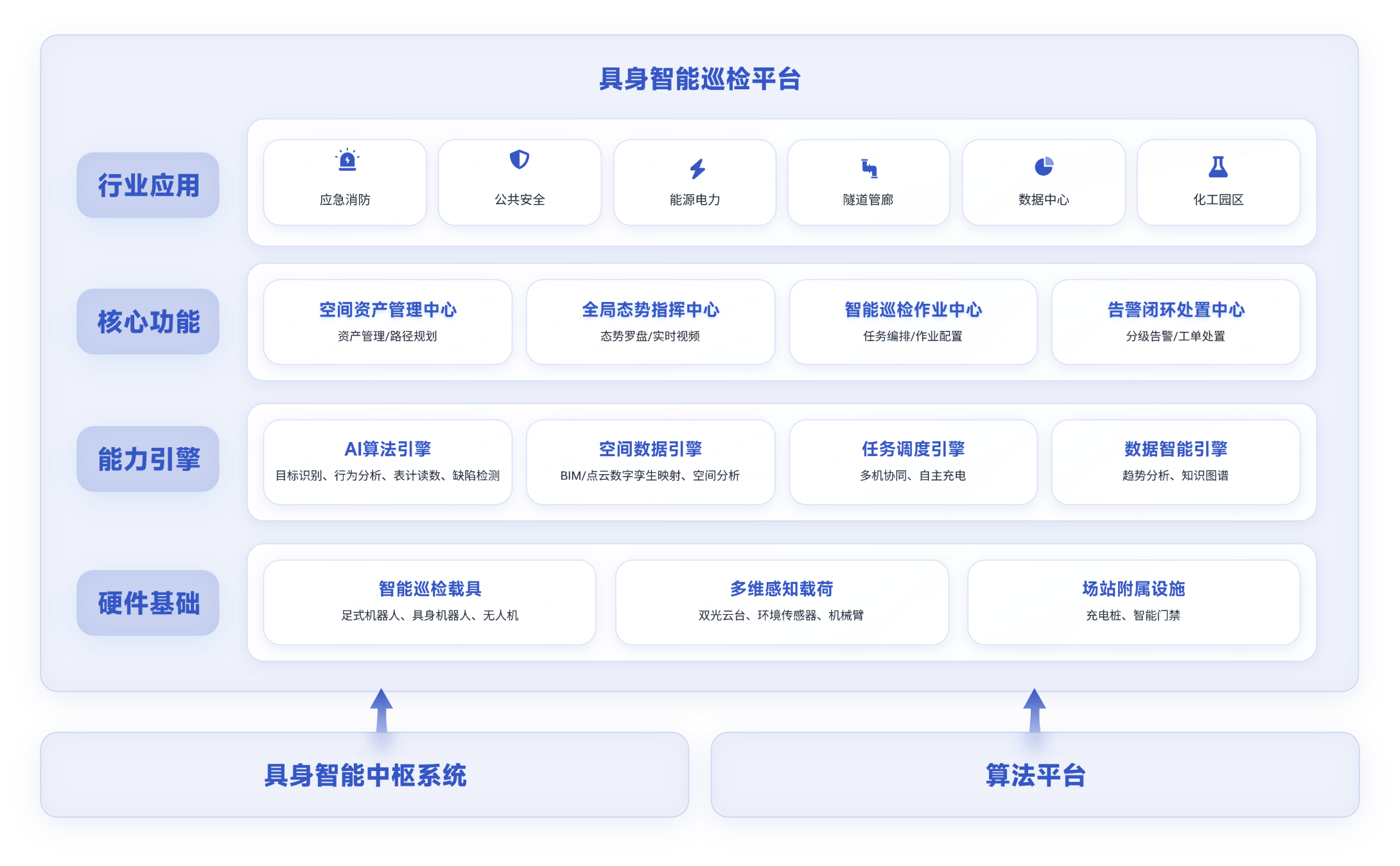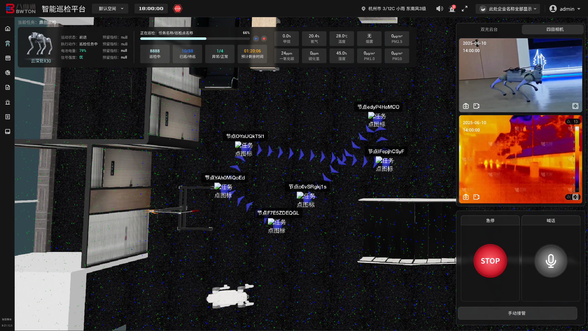 八維通具身智能巡檢平臺基于具身智能技術,旨在實現(xiàn)7x24小時無人化自主巡檢,將人員從高危、繁復的現(xiàn)場環(huán)境中解放出來,構建從任務自動編排、智能感知預警到工單閉環(huán)處置的數(shù)據(jù)驅動的預防性維護體系,全面提升資產(chǎn)安全與運營效能。