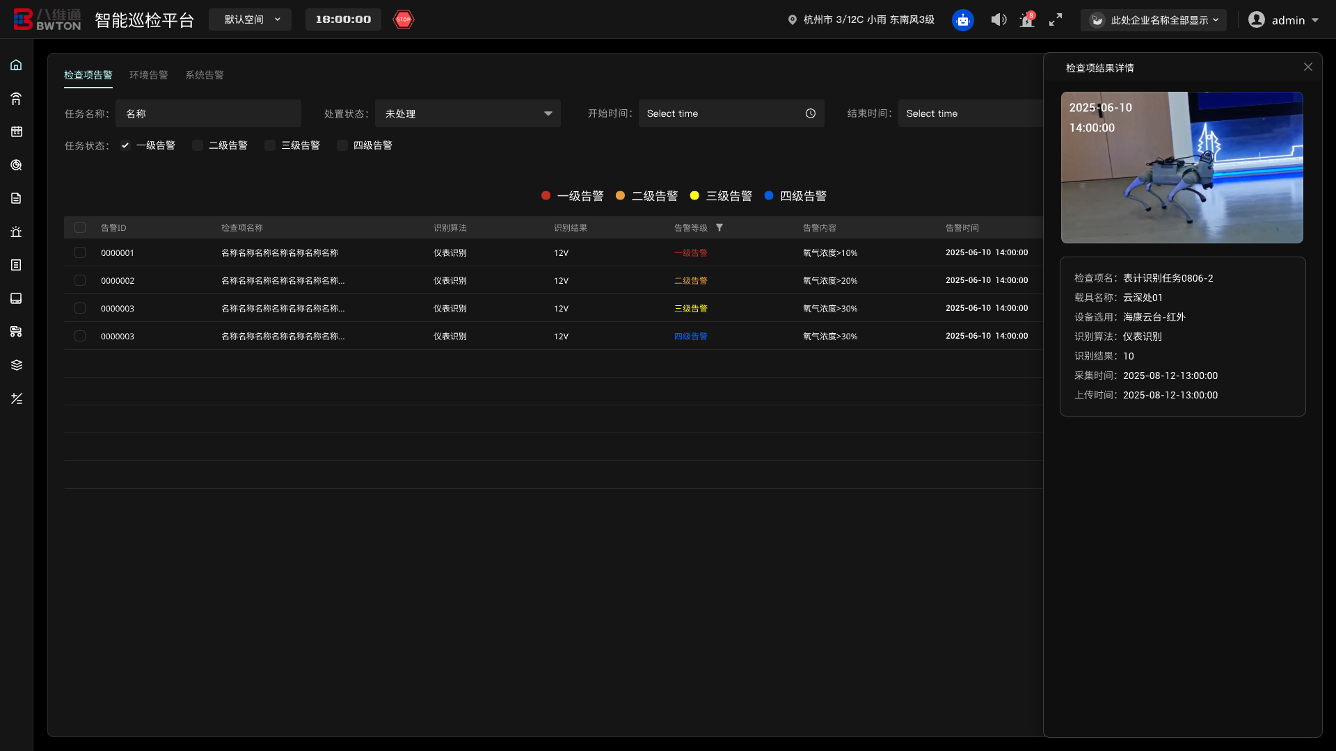提供任務自動化編排引擎,支持基于日歷的周期性計劃與即時任務下發(fā)。自動調度最優(yōu)載具,規(guī)劃路徑,完成無人化、標準化的巡檢作業(yè)